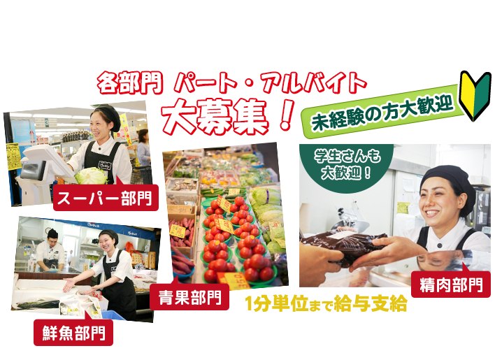 [ スーパー部門 ] 品出し、レジ業務、その他
